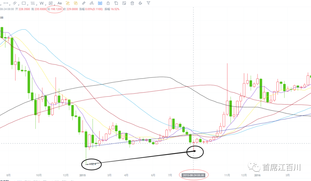其二,这个玩法的区域,刚好是2015年最低价格152美金和后续回踩价格198美金的百倍位置,这也不是巧合