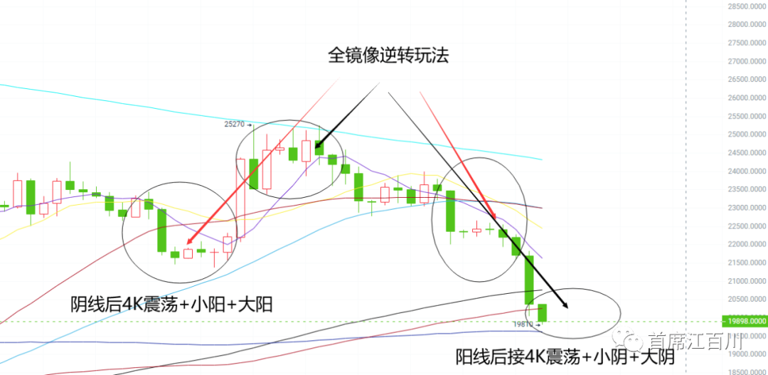 消息面上,近期强势美元的呼声越来越高,表面上是为了控制通胀,实际上却已经有点正常经济学范畴向政治诉求过渡的样子,包括加强加密货币监管等都属于这种诉求变化的状态里。这种变现对市场形成了一定的利空效应,问题一旦上升到政治里就不是技术的事儿了,不做讨论,暂时先不去理会。技术面形态方面,市场在昨天的下跌之后,我们等的那波2日线终究还是演变成了镜像模式,之前的文章中有过说明,没看懂的可以去看看之前的文章。