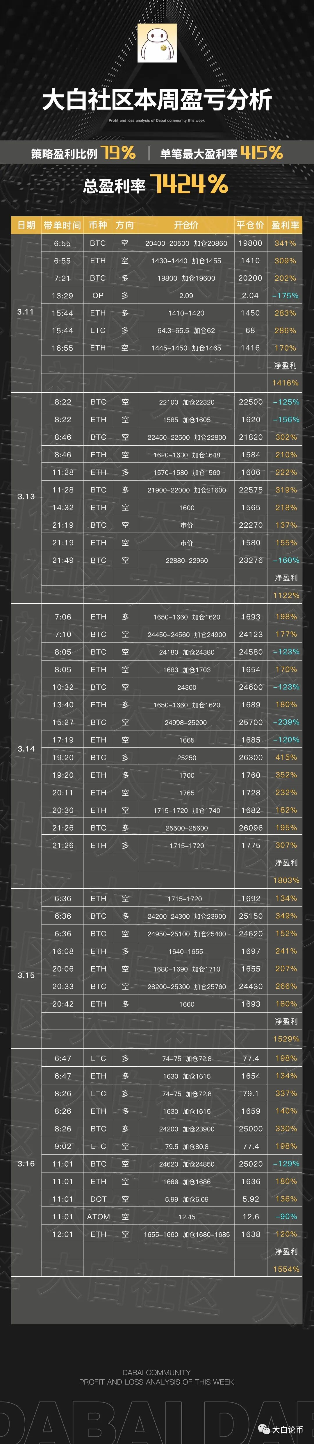 下方是大白社区本周实盘群单子,恭喜跟上的币友,如果你操作不顺,可以来试试水。