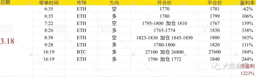 下方是大白社区本周实盘群单子,恭喜跟上的币友,如果你操作不顺,可以来试试水。