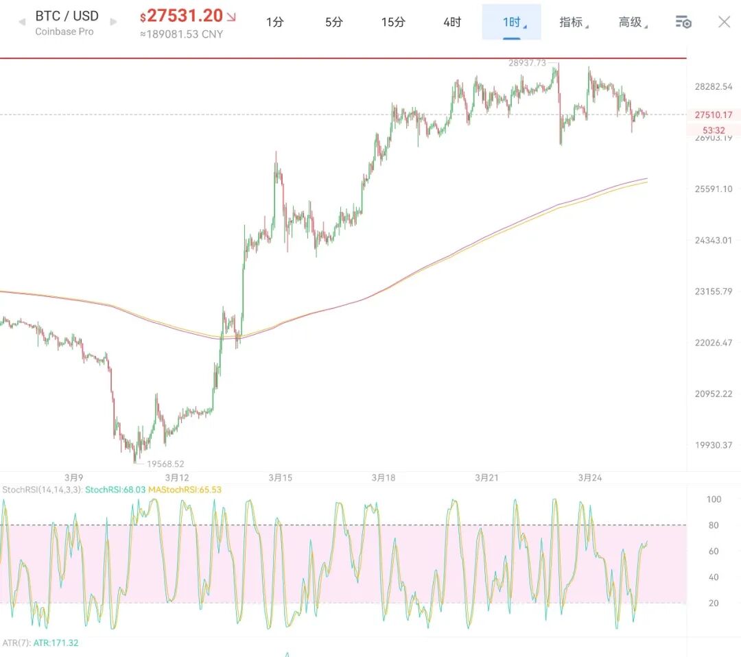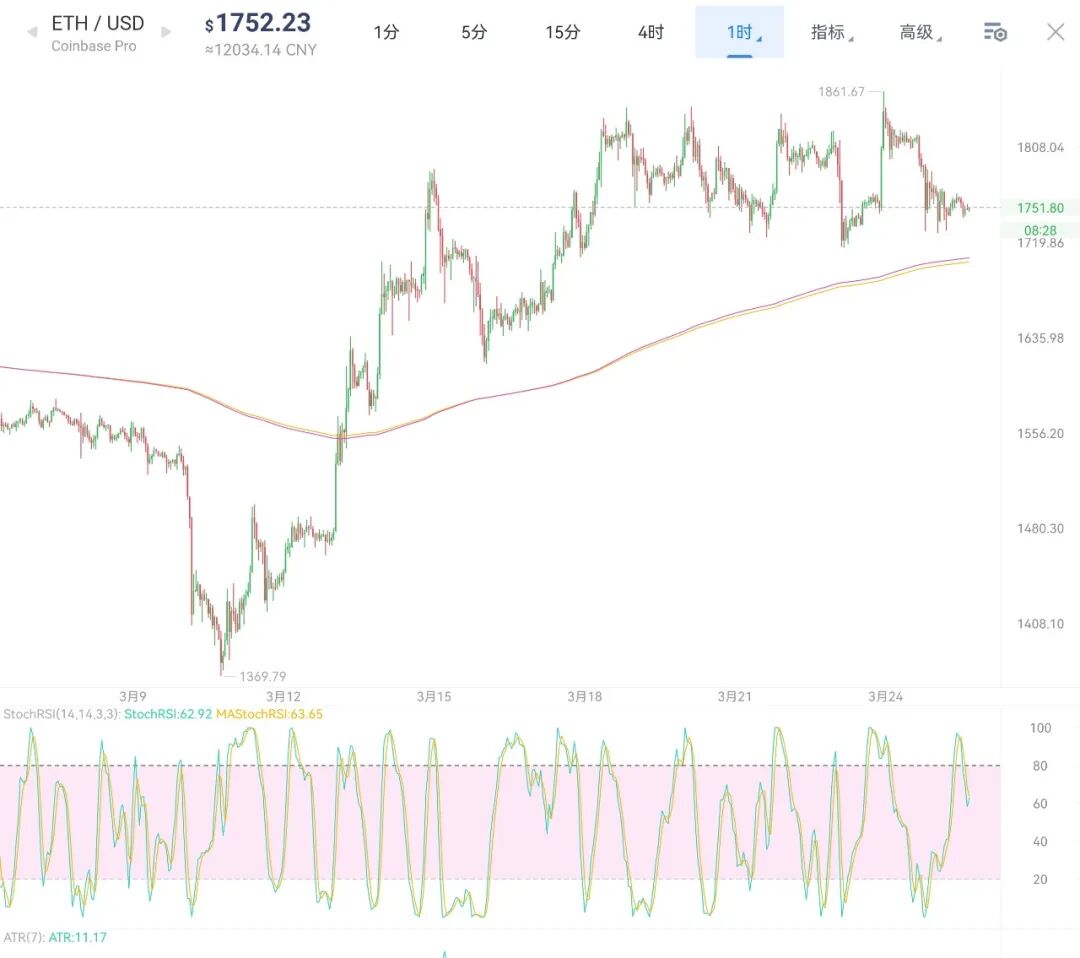 比特币今日来看,市场短线小周期来回画门的同时,看起来守盘能量在持续下降,这应该是一个典型的调整走势,市场资金在撤离到达一定临界点后就会引发大调整,在沿着这个思路走的同时,观察stx发现已经走弱了非常多,之前讲到这个币对比特币的方向具有一定的指向性,因此观察stx已经先一步向下开始跌,所以后续的市场下跌的可能性非常大,在这里不再建议操作,主要以防守为主,山寨币方面也尽量少买多看,等后续市场调整结束后再打入,一些套的比较多的币如果不忍心割掉,虽然行情中期仍然是看涨,但你短期要考虑如果比特币最大回调三千多美金的情况下你能不能扛得住,其实也不一定会跌这么多,只是认为这样最合理,或者说比特币调整的很强势跌不下去,然后在某个位置做一个盘底,然后稳住了再重新打回去也行,安全肯定是第一位。