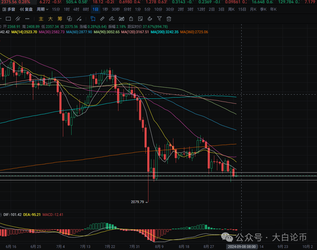 以太日线昨日走出一波回调 从最高2410附近回调至最低2350附近 收线在2370附近 上方压力位于MA7均线附近 形成突破则可看至MA14附近 下方有多次测试2325附近形成支撑 回踩可在附近进行接多 MACD空头增量 双线粘合 四小时上方压力位于MA14附近 形成突破则可看至MA30附近 MACD空头缩量 有形成金叉的迹象 短线给至2325附近可进行接多 反弹目标可看至2370-2410附近 中线给至2228附近可进行接多 反弹目标可看至2285-2340附近 埋伏单给至2182-2160附近可进行接多 目标可看至2320-2450附近