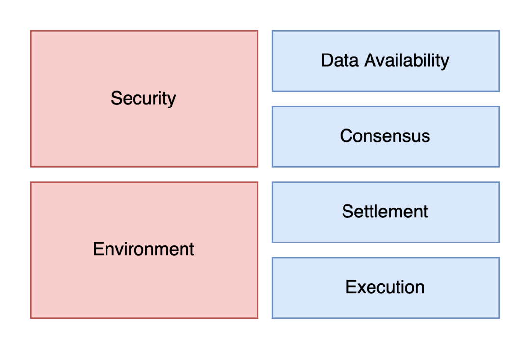 - 模块化区块链: L0 指社会共识与对 L1 的信任假设, L1 指模块化区块链的安全层 (DA 与 Consensus), L2 指模块化区块链的执行环境层 (Settlement 与 Execution)