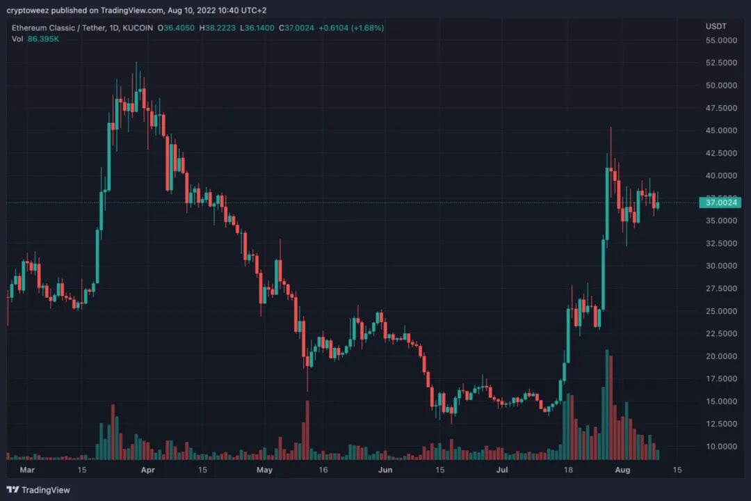 对于以太坊经典的价格,它高达 215%。与 ETC 币一样,上个月几乎没有任何其他加密货币出现上涨。
