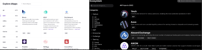 这部分主要是展示和秀肌肉为主,常见的做法是将项目分类别罗列清楚,同时提供一个引导建设 DApp 的入口。