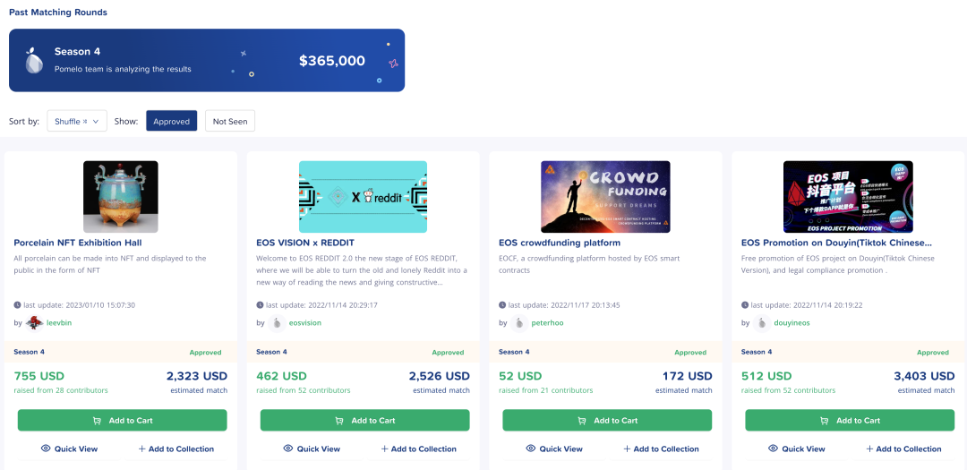 几乎每条公链都有针对开发者、早期项目的 Grant 资助计划,被选中的通常为开源项目,除了会获得一笔小额的资助外,还会给予项目建设主网的技术支持、市场宣发、媒体 PR、地区性社群的孵化等,陪伴项目的成长。大部分公链给予资助的话语权是由基金会决定,例外的是 EOS,成立了二次众筹平台 Pomelo,以 DAO 的模式鼓励社区的粉丝投票来评选项目,增加治理权。
