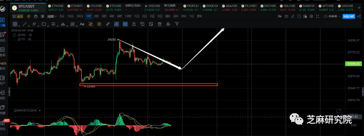 话说大饼这里一直处于震荡,昨晚的反弹没能够守住,早上再次回落,应该说这里还是1h级别回调的过程中。如果能够保持在23000上方震荡的话,还是偏强势的。跌破23000就需要关注22500的位置了。