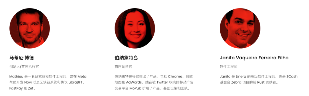 从官网和Linkedin上得知,Linera团由8名左右成员组成(相比Aptos团队64人,Sui团队93人,团队人数少),官网上挂着Rust工程师的招聘需求。成员的具体信息如下: