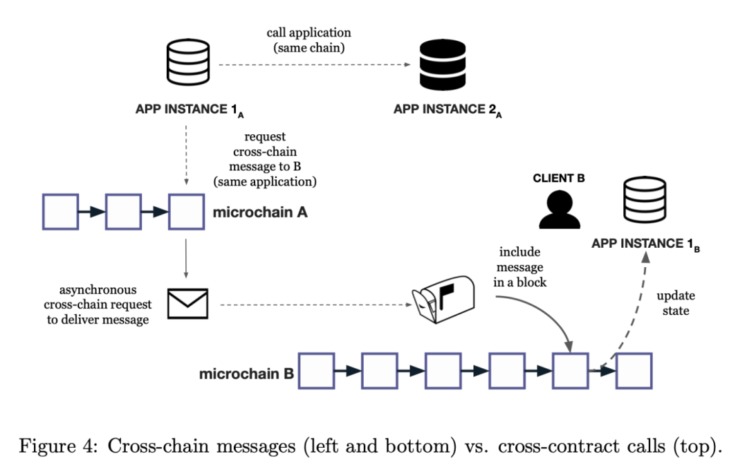 - 应用程序的本地实例为实例与之通信的每个来源维护一个收件箱。当应用程序想要将消息发送到目的地时,它们会返回一个包含消息的值,以便运行时可以执行适当的跨链请求。