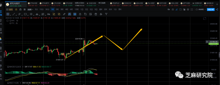 2.15日行情分析,大饼这里4h级别的反弹几率大,关注整体反弹力度