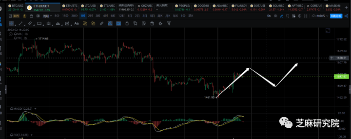 以太这里4h级别的反弹有机会去一趟1600附近,上方在不突破1630的情况下,大概率还有第三笔4h级别的下跌要运行。