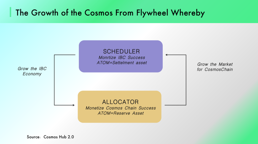 Cosmos 2.0 通过 Interchain Scheduler 和 Interchain Allocator 创造准飞轮机制(激励模型并没有很aggressive),希望巩固 Hub 在Cosmos Network 中的核心位置。