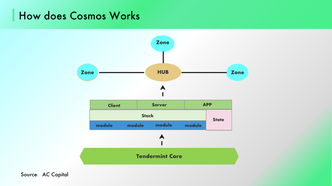 Cosmos Hub:Zone通过IBC依靠Hub实现相互连接,如果一个Zone 链接了足够多的生态,它就可以被认定为 Hub。