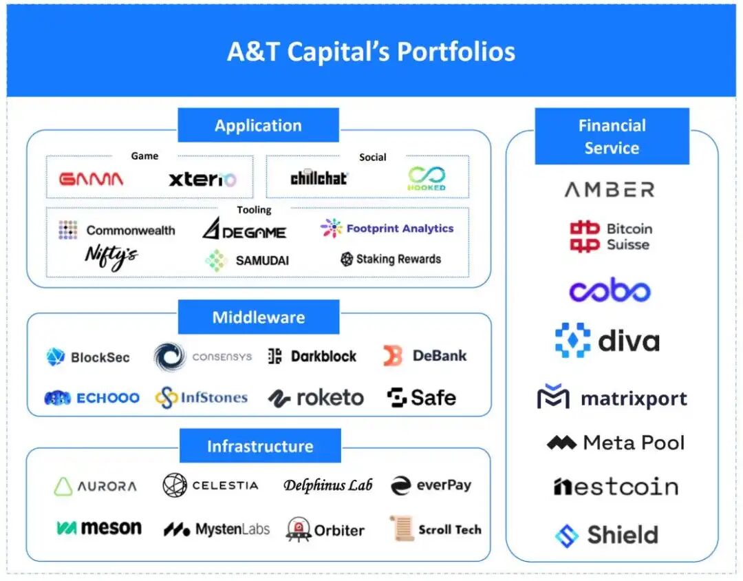 A&T Capital是一家针对新兴颠覆性技术的风投基金。基金专注于支持早期到成长阶段的初创公司。背靠5家金融技术Decacorn(100亿美元以上的估值),分布式记账技术早期支持者以及一批经验丰富产品负责人,A&T Capital在推动下一代去中心化数字时代的初创企业进行大规模落地上具有独特的优势。