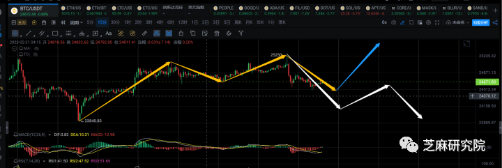 15分钟级别:正在运行一笔15分钟级别的回调,关注下方24300的支撑情况