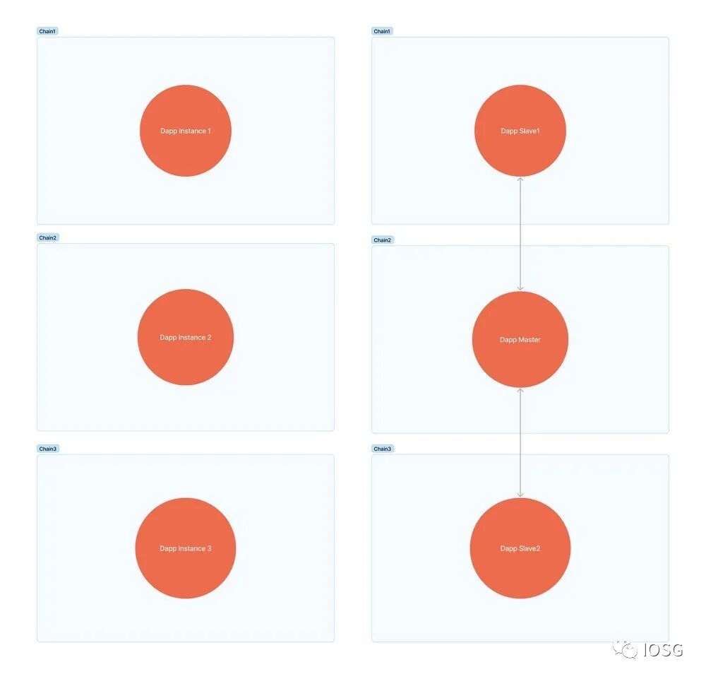 跨链通信拥有强大的自定义性。开发者完全可以基于跨链通信开发全链 DApp。DApp 构建者希望在不同链之间传递消息并获取必要的区块信息。有了这些的特性,全链 DApp 的构建范式从互不通信,转向分布式的设计。在互不通信,相互独立的模型中,不同链上的 Dapp 实例无法彼此共享数据。在分布式设计中,Dapp 实例可以相互通信,并可以定期将数据同步到一个实例。该实例获取所有数据并可以修改其他实例上的参数。借助 ZK 驱动的跨链通信,因为 ZKP 可以提供简洁的证明,它可以消耗更少的存储,将源链状态中继到目标链。此外,在目标链上验证 SNARK 证明相对便宜。ZKP 的这两个重要特性可以实现低成本的跨链消息和状态传递。在目标链上的验证源链状态可以实现 IBC 风格的跨链桥接。这大大增加了跨链的安全性。