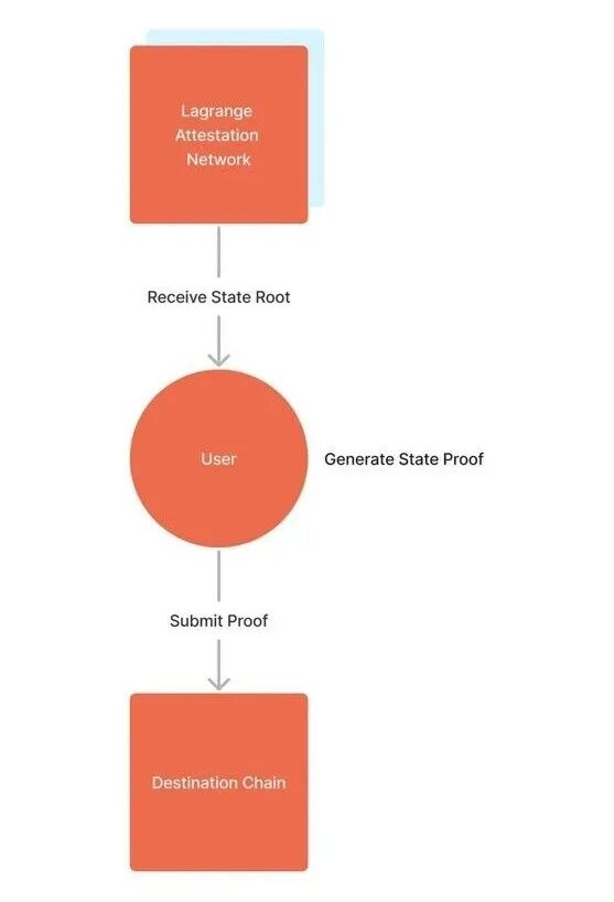 Lagrange Labs 构建非交互式跨链状态证明。Lagrange Attestation Network 负责创建状态根。每个 Lagrange Node 都包含一部分分片私钥,用于证明特定链的状态。每个状态根都是一个阈值签名的 Verkle Root,可用于证明特定链在特定时间的状态。状态根是完全通用的,可以在状态证明中使用,以证明链中任何合约或钱包的当前状态。