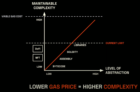 以 Dark Forest 为代表,Opcraft、Curio、Topology 都可以归于这个赛道。2021 年 9 月大火的 Loot 生态虽然 NFT 价格下跌许多,但其依然给市场很高的叙事想象空间。上述全链游戏虽然可玩性还不是很高,但随着 Gas 费在技术发展过程中逐渐降低,其链上可承载的内容的复杂性也会逐渐升高。V 神在 2019 年时提出金融与游戏会是区块链最先落地的两个场景,随着 DeFi 与 NFT 的大火,全链游戏也可能成为下一步市场的发展方向。