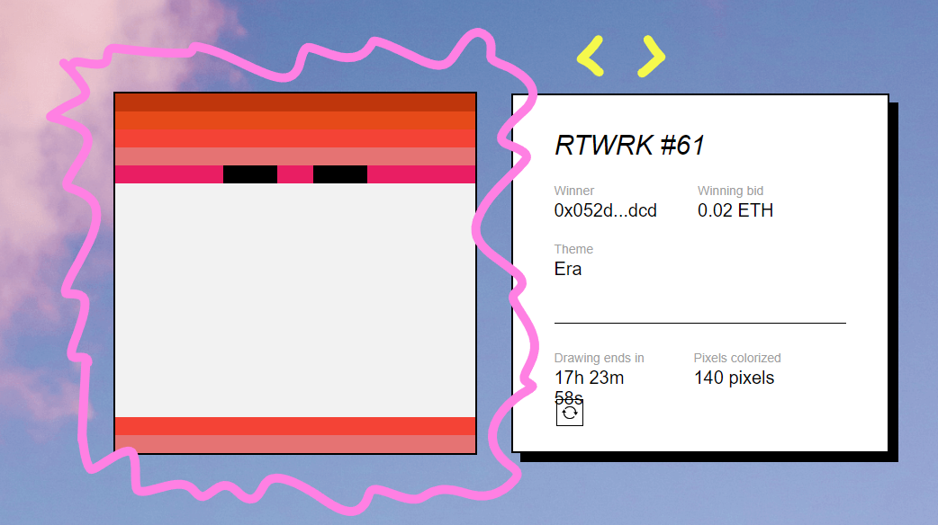每两天,新 rtwrk 都会被拍卖。当用户赢得拍卖后,可以为下一个 rtwrk 列一个主题。拍卖结束后,每个 pxl NFT 持有者都会收到主题,投入到创作中。