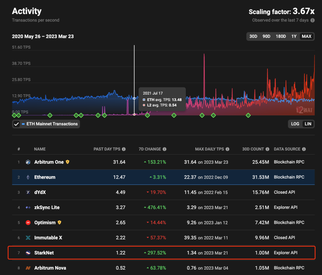 作为 Layer2 四大天王中估值最高(母公司 StarWare 估值 80 亿美金)的项目,StarkNet 生态项目的含金量不用多说,从近期的交易活跃度就可见一斑。