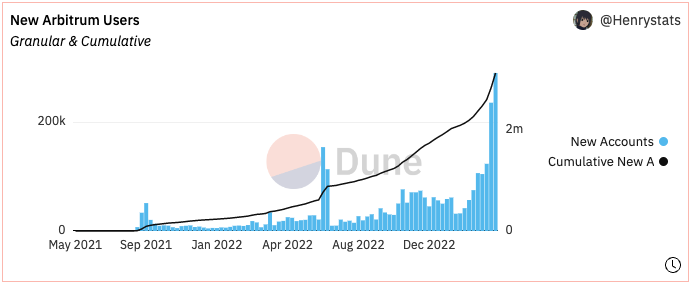 (数据来源:https://dune.com/Henrystats/arbitrum-metrics)
