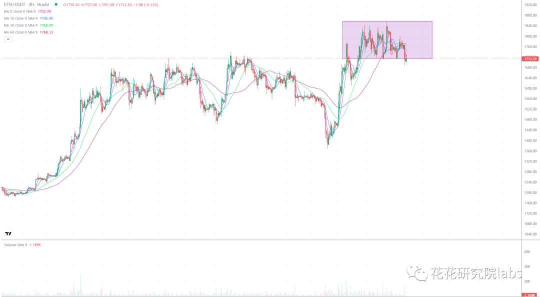 以太坊四小时出现顶部形态,短线有回调的风险,这波若能调整到1600及其下方,则是不错的低吸机会,中线继续低吸持有为主。