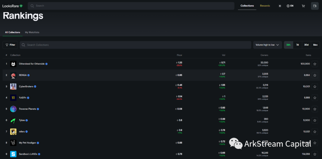 LooksRare交易量排行(LooksRare官网)