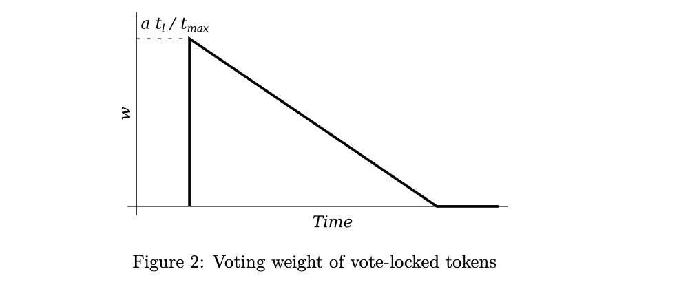 3)锁仓获得 $veCRV 的过程是不可逆的,这意味着用户必须承诺长期持有 $CRV。同时,$veCRV 也是不可转让的,即在锁定的时间内,用户持有的 $veCRV 不能转移给其它地址。veToken 机制通过让代币持有者长期持有代币以支持协议的成功,建立了持有者之间的“共识”,这种共识不仅有助于增加代币的价值,也为协议的去中心化治理奠定了基础,因为它建立在代币持有者之间的平等权利和参与基础上,从而确保治理过程的公正和透明。需要强调的的是,本文讨论的 “治理去中心化” 是一个广义概念,包括多层次、多类型的治理结构和多种范式,而不仅仅是关于直接的、第一层治理的狭义概念。