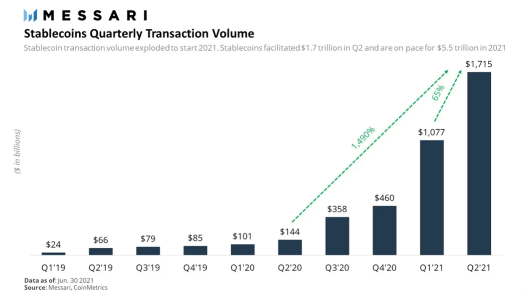 2019 年前后随着加密市场的不断发展,尤其是 DEFI 的崛起,稳定币(挂钩美元资产如$USDT、$DAI 等)、其它挂钩资产(如 $wBTC、$renBTC )的种类不断增多和规模不断扩大。交易需求迅速增长。举例来说,自 2019 年 Q1 的 240 亿美元到 2019 年 Q3 的 790 亿美元,稳定币的交易量增长了 229%。由此促生了围绕这些资产的全新细分市场。图片来源:Messari