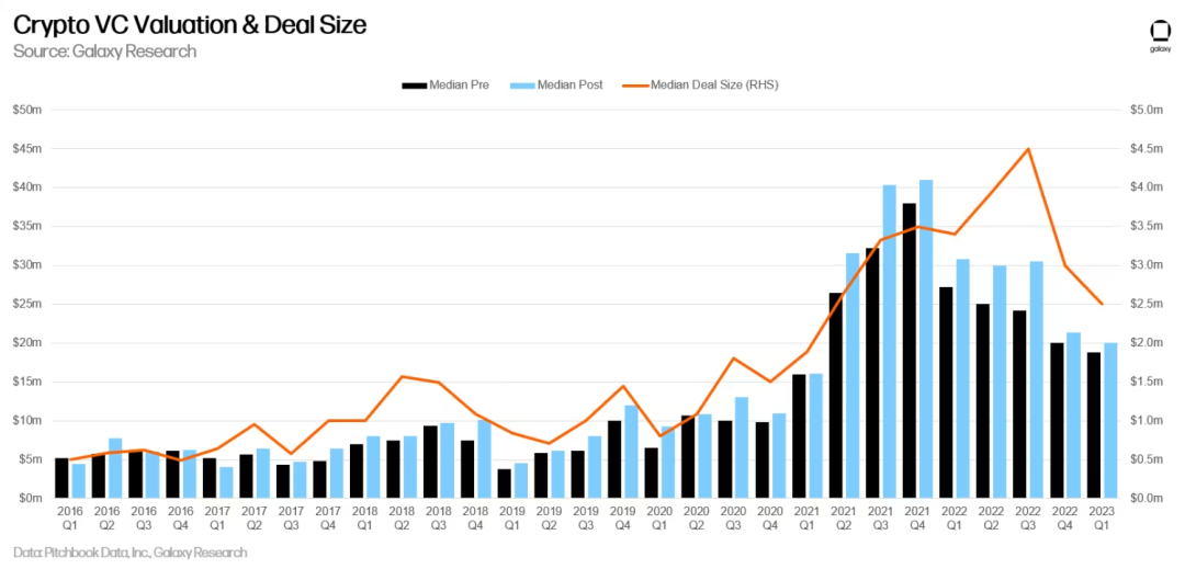 VC 投资规模和初创公司融资前估值的下降也符合更广泛的 VC 市场的下滑。