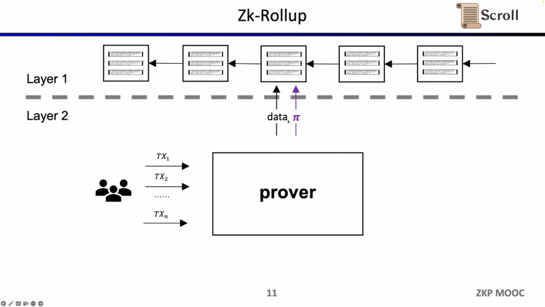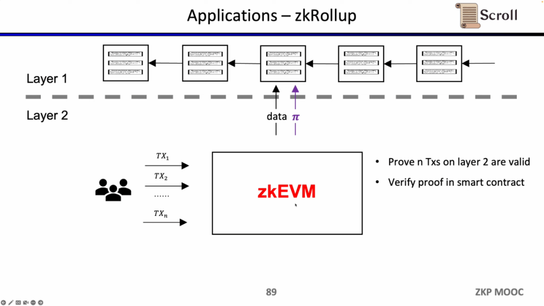 在zkRollup的架构中,我们通过在L1的智能合约,来验证在 L2 上的n笔交易是有效的。