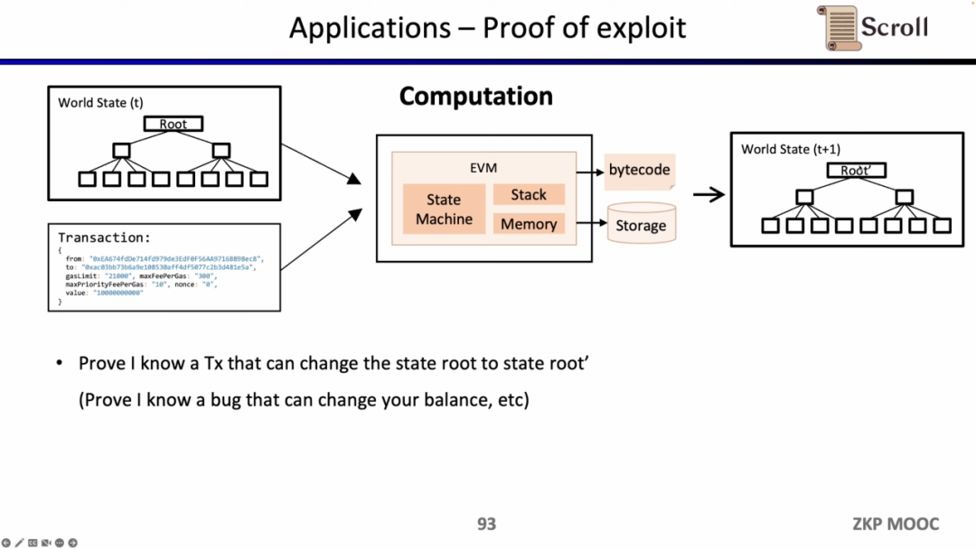 因为zkEVM可以证明状态转换,它也可以被白帽所利用,来证明自己知道某些智能合约的漏洞,寻求项目方的赏金。