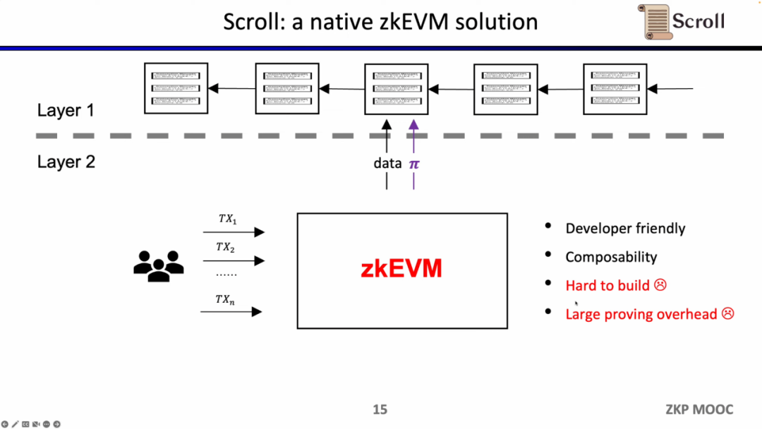 在最新的 ZKP Mooc 课程中,Scroll 的联合创始人张烨发表了关于 zkEVM 设计,优化和应用的演讲。Scroll 在构建以太坊等效的ZK-Rollup,在字节码级别的兼容,直接支持所有现有的工具。