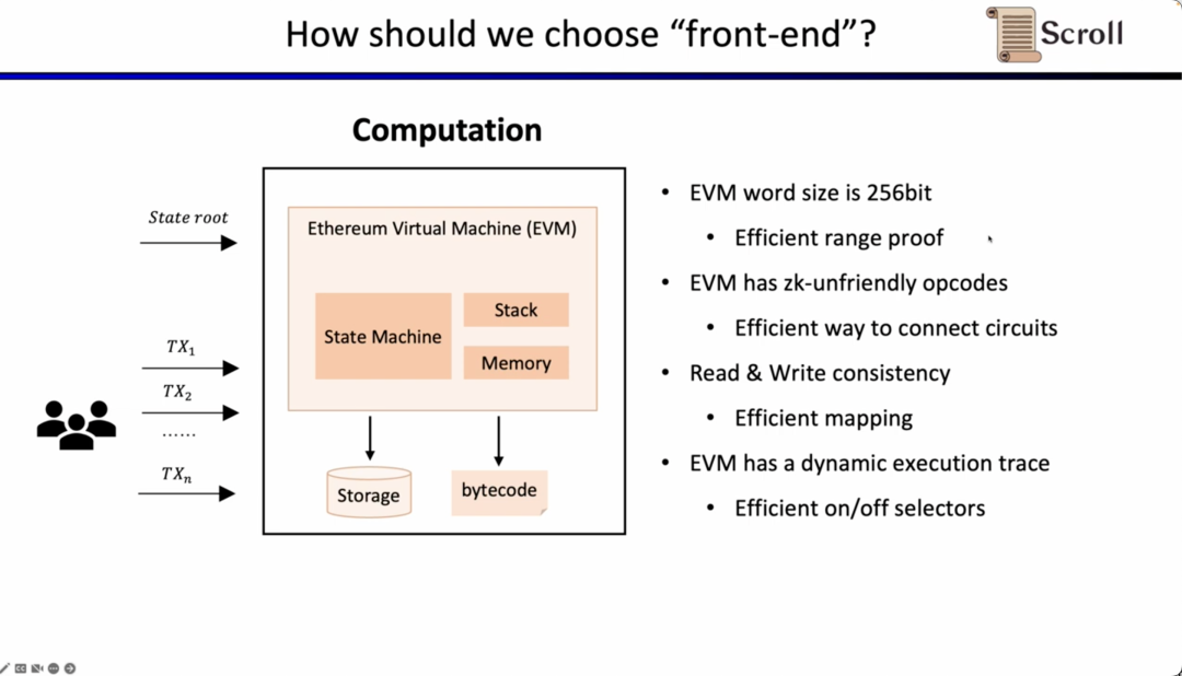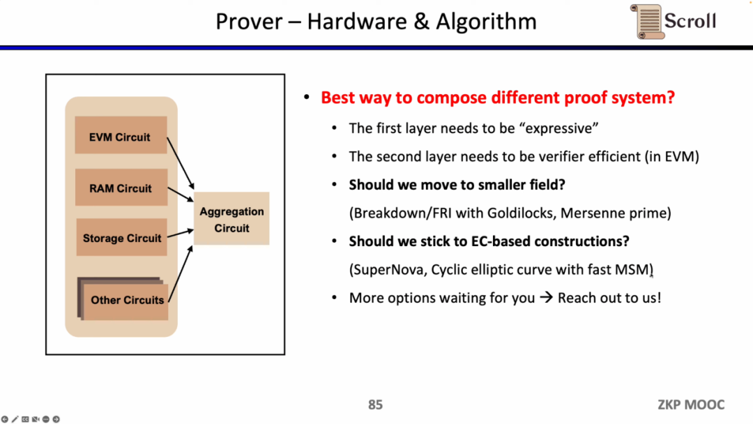 第三部分,张烨谈论了一些Scroll 在构建 zkEVM 过程中有趣的研究问题,从前端的算术化电路到证明者的实现。