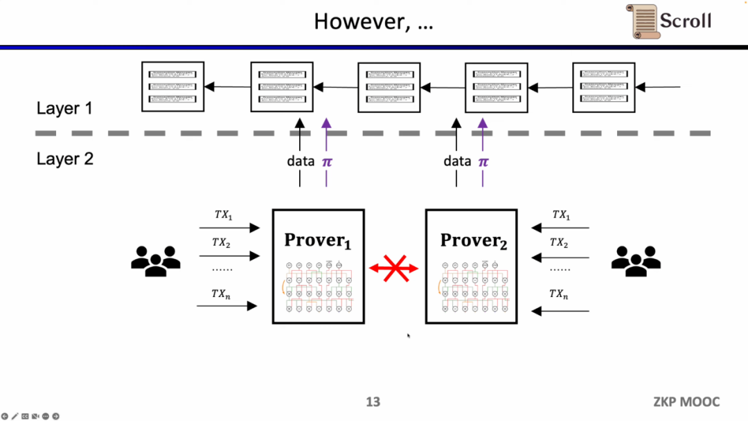 在早期的ZK-Rollup中,电路是针对特定应用而设计,用户需要将交易发送给不同的证明者,然后不同应用的ZK-Rollup再将自己的数据和证明提交至L1。这样带来的问题是,丧失了原先 L1 合约的可组合性。