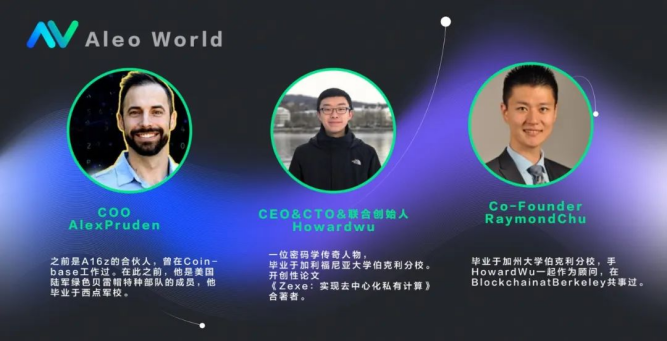 Aleo由HowardWu、MichaelBeller、CollinChin和RaymondChu于2019年正式成立,其中Howard Wu是Aleo的创始人 。该团队由来自谷歌、亚马逊和Facebook等公司以及加州大学伯克利分校、约翰霍普金斯大学、纽约大学和康奈尔大学等研究型大学的世界级密码学家、工程师、设计师和运营商组成。2022年9月20日,Alex Pruden被提升为Aleo的CEO,他此前在A16Z、coinbase工作。