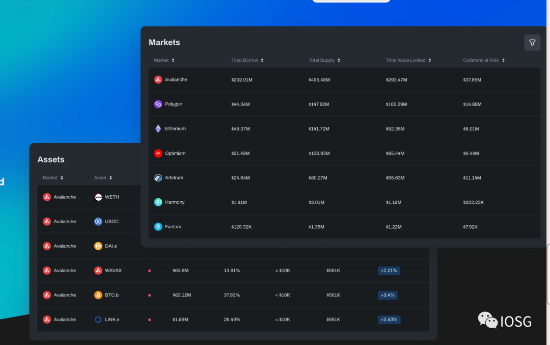 Chaos Labs 专门从事风险仪表盘,提供市场信息,如不同链上的总借款额、总供应、TVL 和风险抵押品。