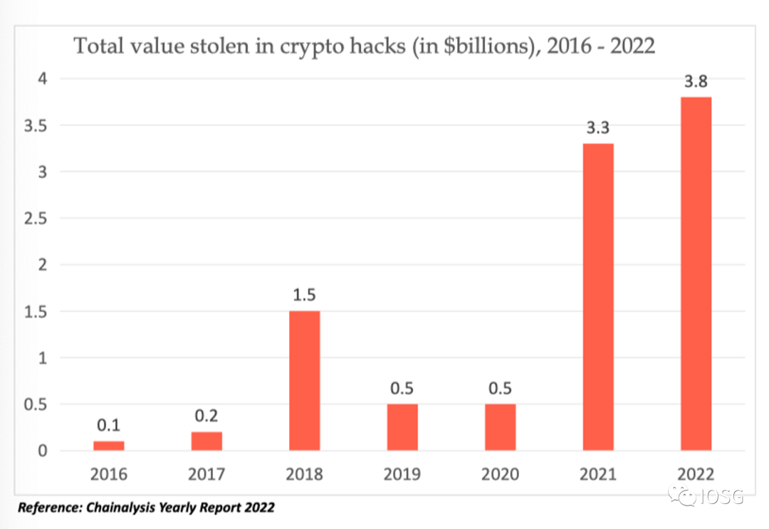 Web3 安全漏洞对 Web3 生态构成了重大威胁,根据 Chainalysis 的数据,智能合约安全问题已导致38亿美元的损失。下面的图表展示了 Web3 黑客攻击数量的不断上升。