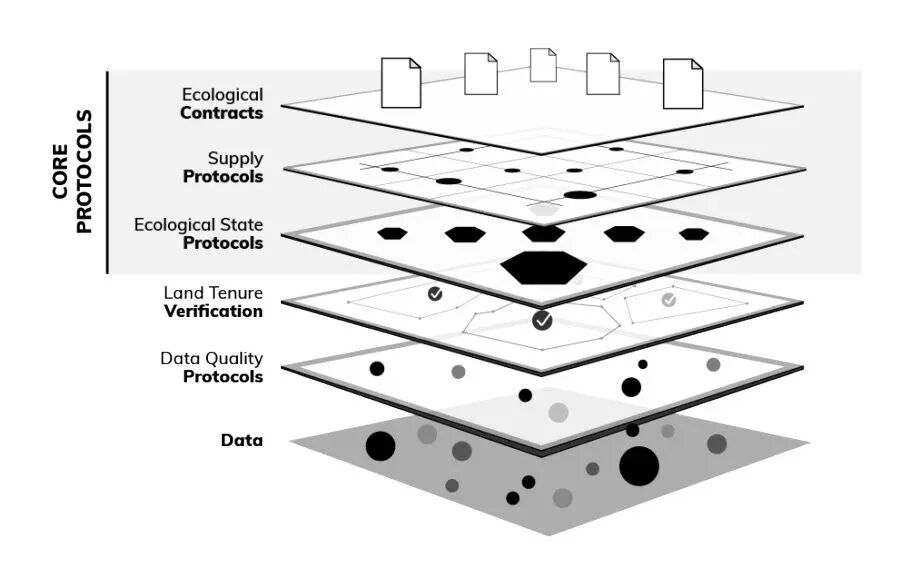 Regen Ledger则提供了三个核心的生态协议框架:生态状态协议(Ecological State Protocols,ESPs)、生态合约(Ecological Contracts,ECs)和供应协议(Supply Protocols,SPs)。