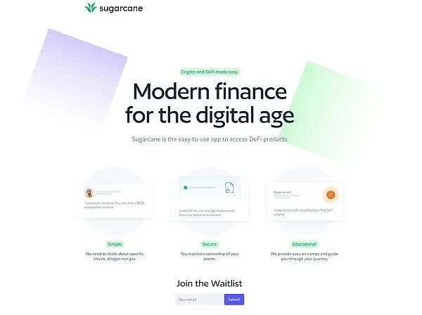Sugarcane 是一个使加密货币和 DeFi 变得简单、易于新手使用的平台。测试版将在未来几周内发布,可在官网加入候补名单。