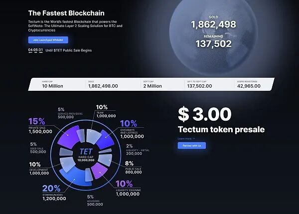 Tectum 的原生代币 $TET 即将推出,可在官网预约公开销售的白名单。如果你想更早抢购代币,可以参加他们在 DAOMaker 上的投票活动:https://daomaker.com/company/tectum