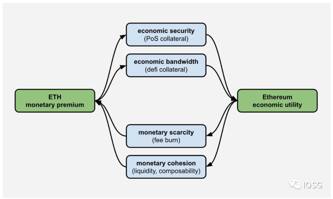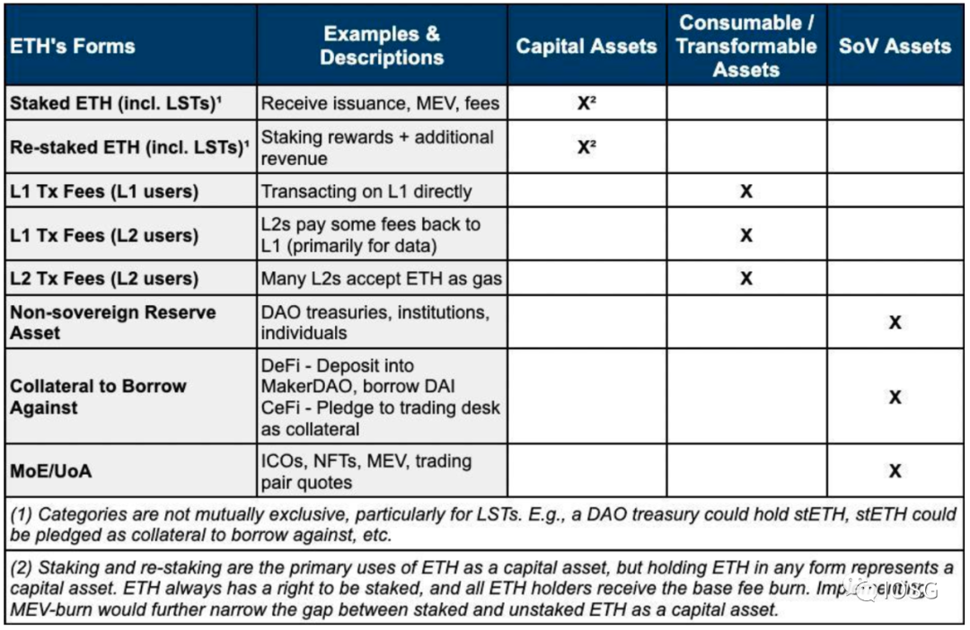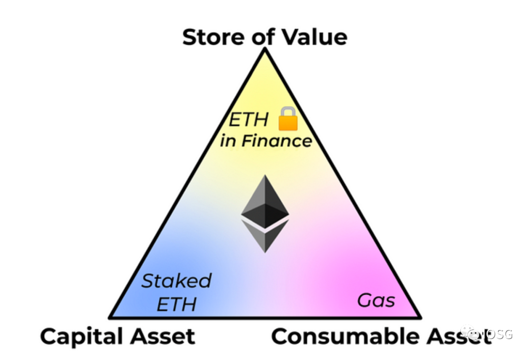 David Hoffman在2019年指出,以太坊能够同时作为上述三种资产:质押的ETH 作为资本资产,Gas作为消耗性资产,锁定在DeFi中的ETH作为价值存储资产。
