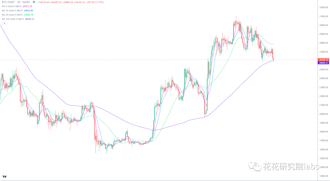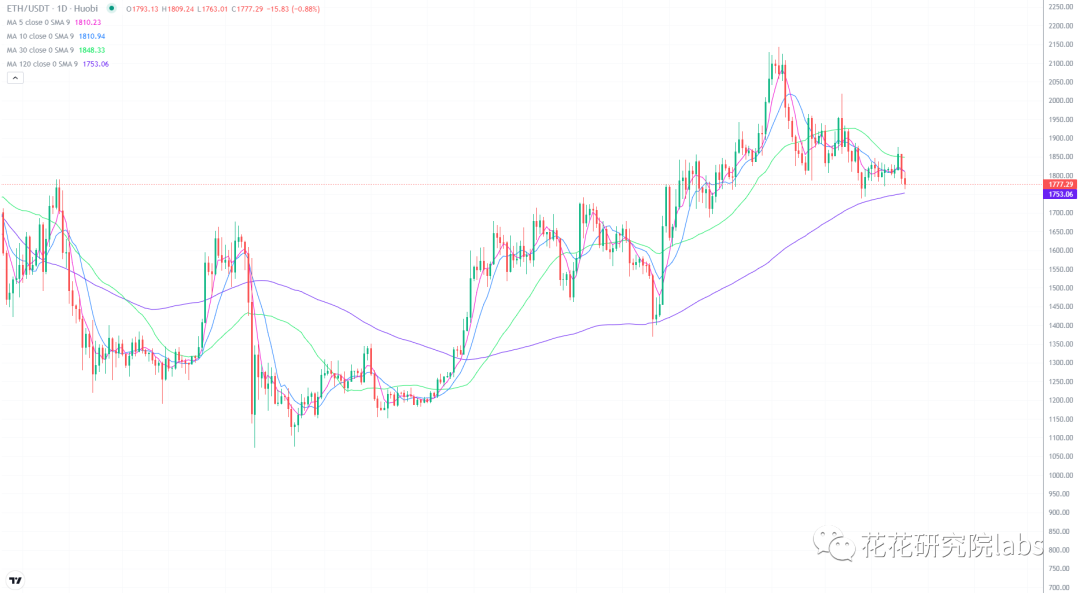以太的走势目前来看不太乐观,币价也到了120日均线附近,如果有效跌破,立马走人。