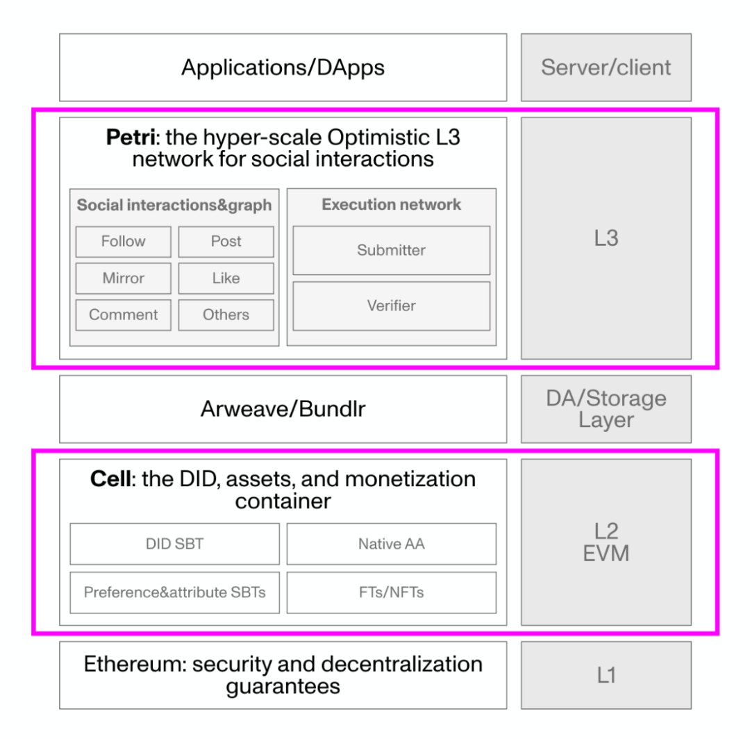 此项目提供了一个针对 Web3 社交定制的可组合的大规模 Layer 3 解决办法,项目叙述宏伟,对标的是 Lens Protocol、Momoka 和 CryberConnect,且技术架构更为复杂。