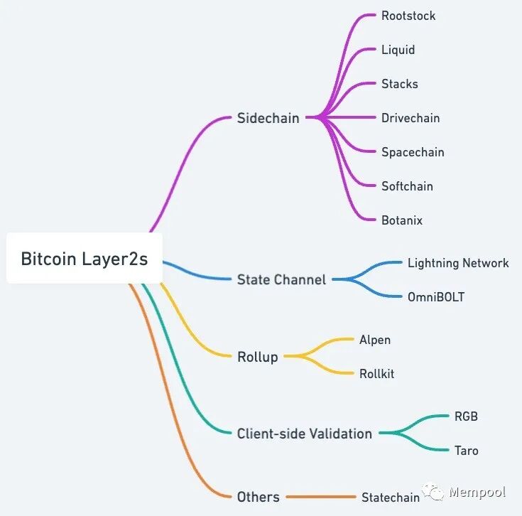 但如果跳出二层这个限制,对围绕比特币技术还可以这样划分: