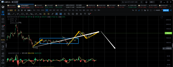 以太这里走的还是不错的,4h级别的反弹向上走了延伸。短线先看能否再破下1910,如果突破可以看1930附近。后续如果向下有效跌破1840,那么是可以认为开始走一笔4h级别下跌的。15分钟级别,看能否突破1910.