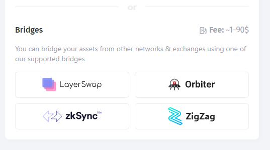 (Starknet 官方推荐,https://www.starknet.io/en/ecosystem/bridges-and-onramps)