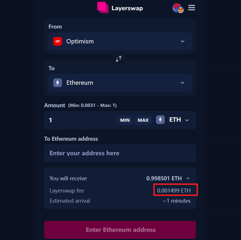 3. 当需要从二层跨链到主网时,优先使用 Layerswap,二层到主网的费用还是 Layerswap 最便宜;