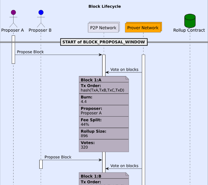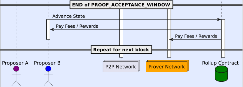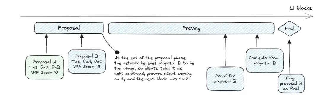 (流水线式出块流程,前一个区块的提议阶段刚结束,就开始下一个区块的提议阶段,而无需等待之前区块的Proving阶段结束)