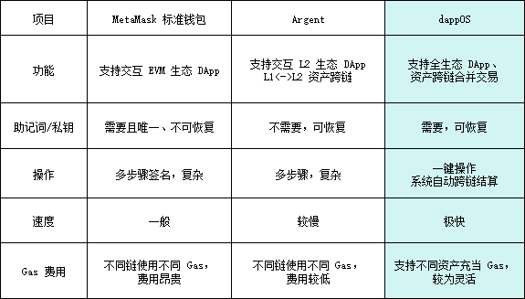 对比跨链、钱包项目,dappOS 有何优势?